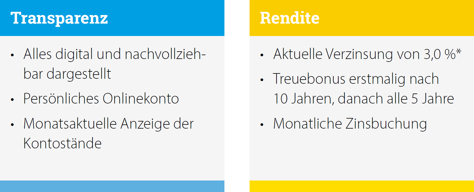 * Verzinsung auf Basis der aktuellen Deklaration kann für die Zukunft nicht garantiert werden.
